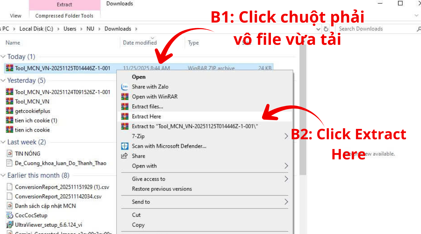 - Tiện ích tải về có dạng .rar → cần giải nén
